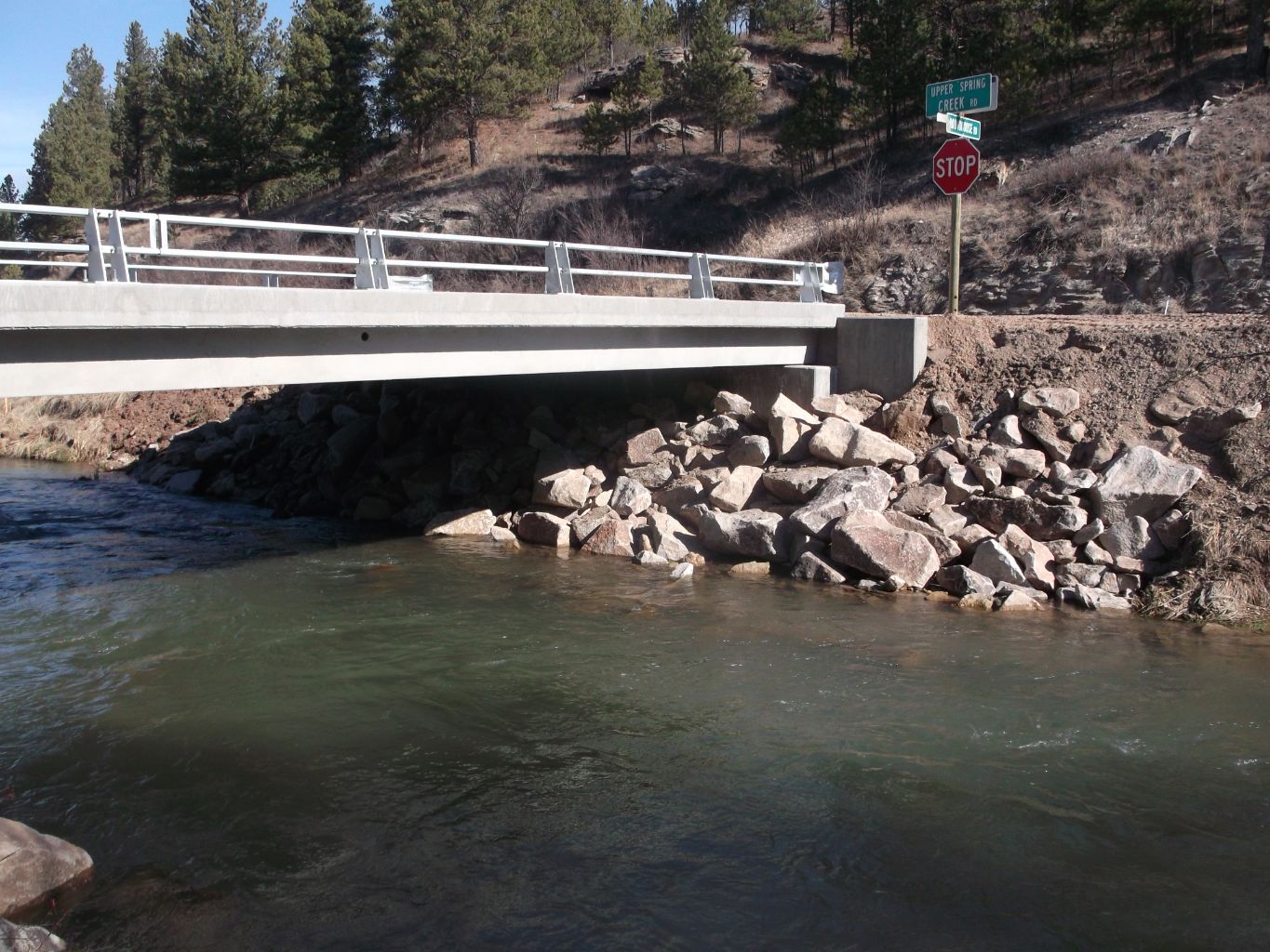 This bridge is located over Big Spring Creek, and is in a detailed flood study area, meaning the water surface of the creek could not be increased at all. In addition, lengthening the bridge to accommodate hydraulics was a challenge due to the proximity to the highway on the east, and a residential driveway on the west.
